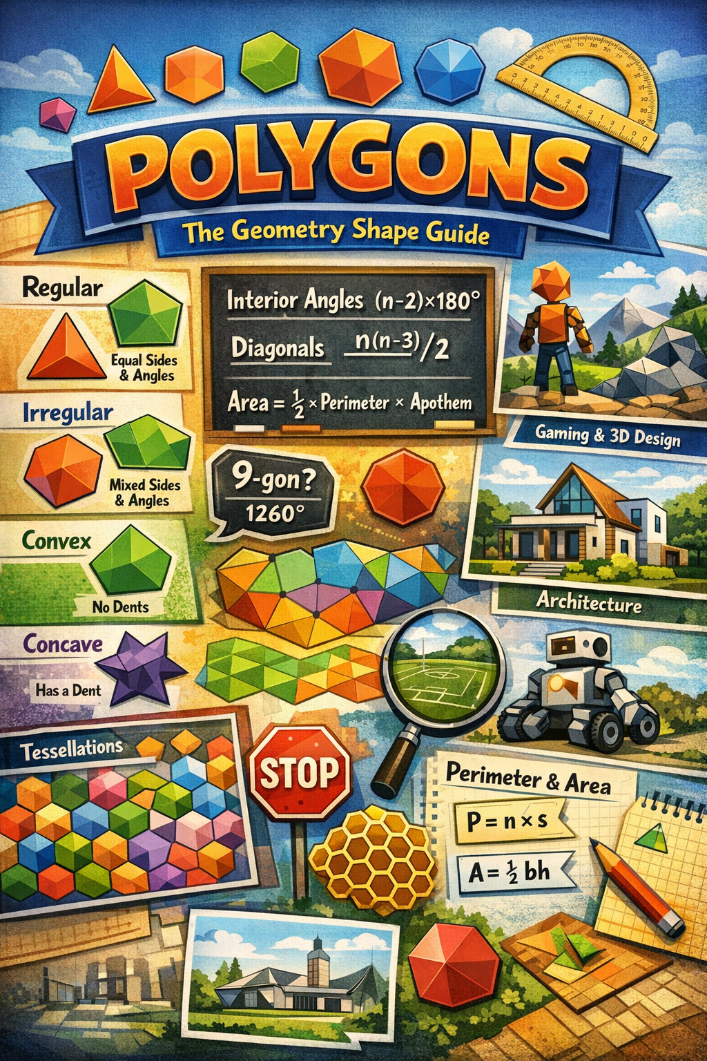 If circles are the smooth “VIPs” of geometry, polygons are the hardworking project managers: straight edges, clear corners, and everything nicely measurable. Polygons show up everywhere—road signs, soccer fields, Minecraft builds, logos, floor tiles, and the 3D graphics in your favorite games. When you learn polygons, you’re not just memorizing shapes; you’re upgrading your ability to spot patterns, reason logically, and calculate like a pro.